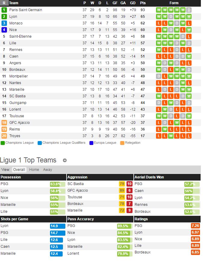PSG 는 이미 우승을 확정 지은지 꽤 되었지만 매경기 주전 멤버들을 내보내며 승리를 따내고 있다. 올시즌 마지막 홈 경기임에 만큼 즐라탄-카바니-디마리아 등 주축 멤버들에게 전부 기회를 줄 것으로 예상된다. 낭트는 지난 라운드 캉 전에서 1-2 패배를 당하면서 최근 리그 6경기에서 1승 1무 4패로 부진에 빠져있다. 최근 맞대결에서도 PSG 가 6전 전승으로 우세에 있고 홈경기임에 만큼 승리가 예상된다.