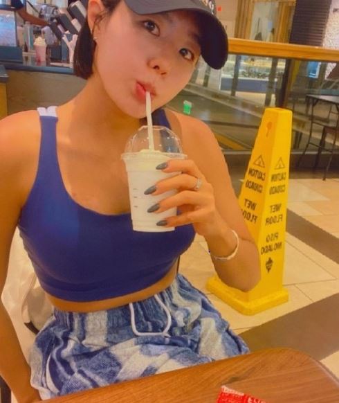 사진 속 이상화는 하와이에서 브라탑에 바지를 입은 채 음료를 마시고 있다. 이상화의 건강한 구릿빛 글래머 보디라인이 보는 이의 감탄사를 자아낸다.