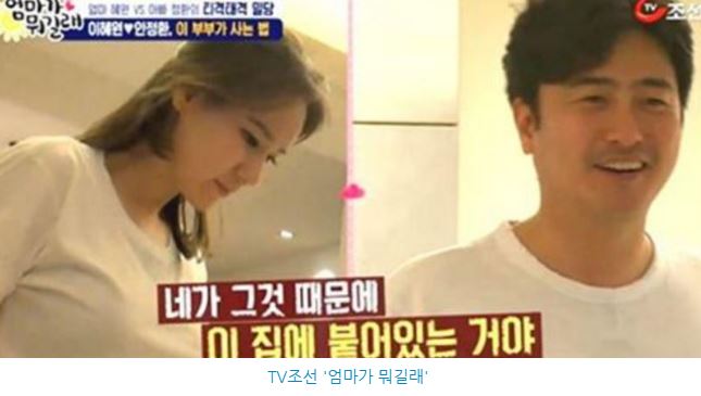 안정환은 미안했는지 곧장 이혜원에게 다가가 아내가 끓인 된장찌개를 보며 "맛있겠다. 안 봐도 100% 맛있어"라며 칭찬했고, 이에 이혜원은 마음이 금방 풀리는 모습을 보였다.