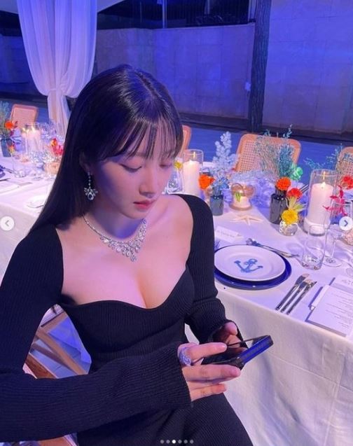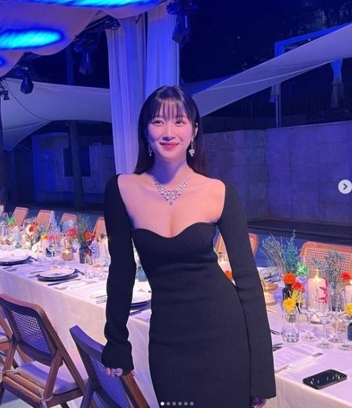 사진에서 문가영은 넥라인이 깊게 파인, 몸매가 드러나는 검은색 드레스를 입고 있는 모습이다. 여기에 화려한 목걸이와 귀걸이를 착용, 섹시하면서도 고혹적인 매력을 더했다. 특히 문가영은 볼륨감이 넘치는 글래머러스한 몸매도 과시해 눈길을 끌었다.