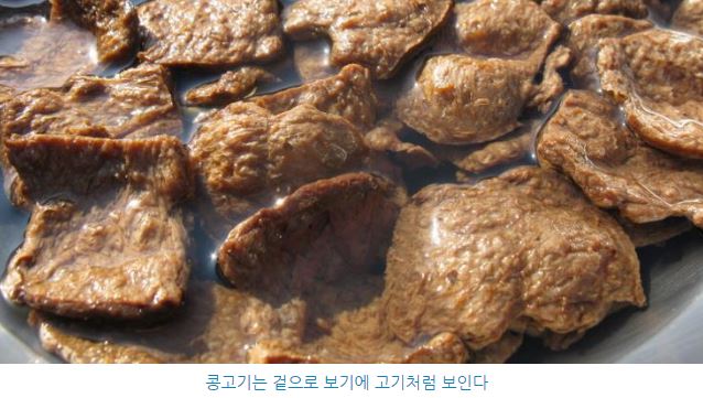 그런데 놀랍게도 짜파게티의 '고기'는 '고기'가 아니라고 한다. 짜파게티 후레이크에 들어있는 고기는 콩으로 만든 '대두단백'을 뭉쳐서 만든 것이다. 대두단백은 콩에서 기름과 탄수화물등을 제거한 것으로 순순한 콩단백질을 응축한 식품이다. 대두단백은 그 생김새와 식감이 '고기'와 비슷해 '콩고기'라고도 불린다.