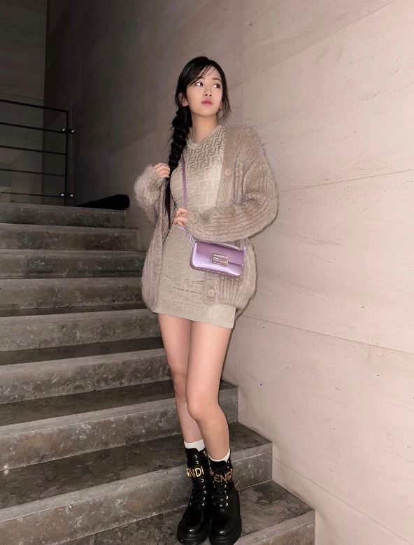 안유진은 몸에 타이트하게 붙는 니트 원피스에 카디건을 걸쳐 글래머 몸매를 과시했다. 무엇보다 가장 눈에 띈 것은 그녀의 다리길이. 키 172cm의 장신답게 쭉 뻗은 각선미가 돋보인다.
