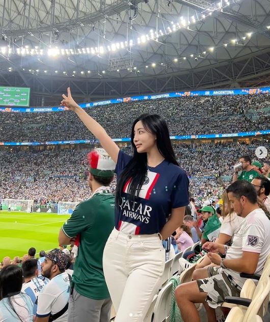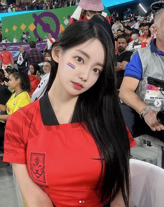 여기에는 대한민국 축구 대표팀 유니폼을 입고 포즈를 취하고 있는 그녀의 모습이 담겼다. 곽민선은 볼에 태극무늬 페인팅까지 그리며 응원에 진심 가득한 모습을 보였다.