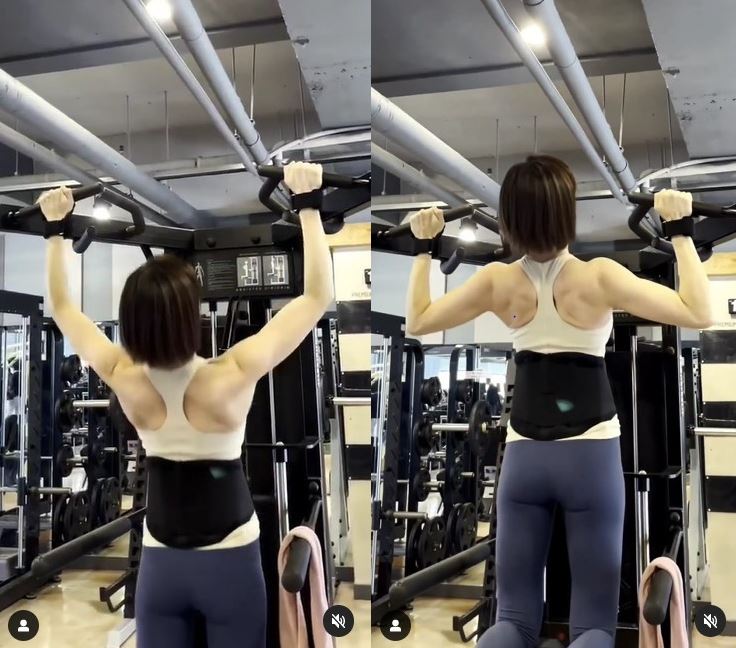 영상 속에는 성현아가 풀업을 하고 있는 모습이 담겼다. 운동을 수행할 때마다 선명하게 드러나는 성현아의 등근육이 눈길을 끈다.