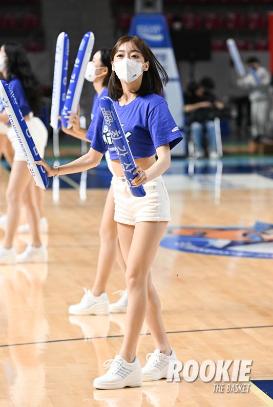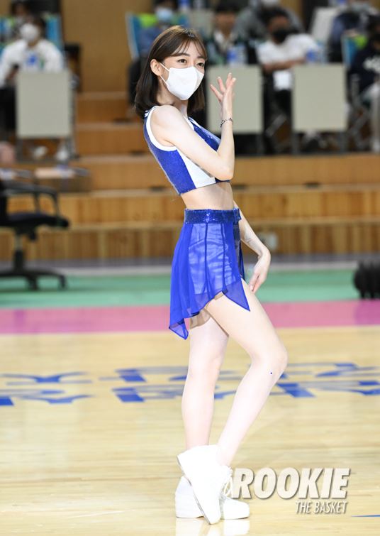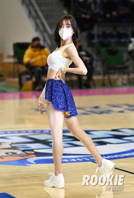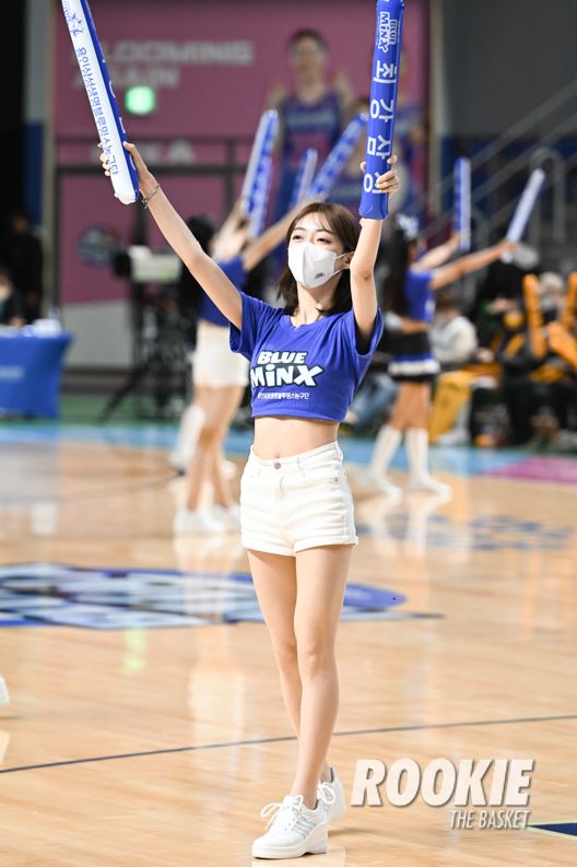 용인실내체육관에서 ‘신한은행 SL 2022~2023 여자프로농구’ 용인 삼성생명과 부산 BNK썸의 경기가 열렸다. 마서연 치어리더가 삼성생명을 응원하고 있다.