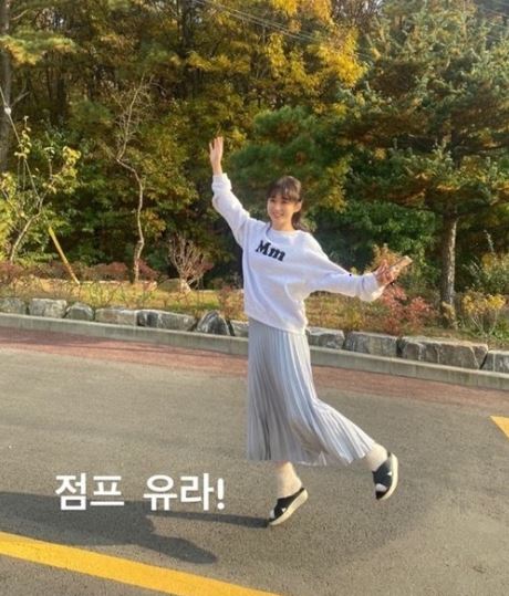 장나라는 최근 인스타그램 스토리에 "점프 유라"라는 글과 함께 사진을 게재했다.