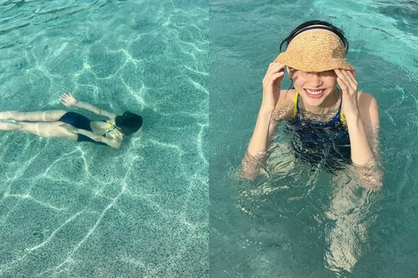 군살 하나 없는 늘씬한 몸매를 자랑했다. 뿐만 아니라 사랑스러운 얼굴에 탄탄한 몸매로 반전 매력을 선보였다. 특히 인어공주를 연상케 하는 자태로 수영 실력을 뽐내 눈길을 끈다.