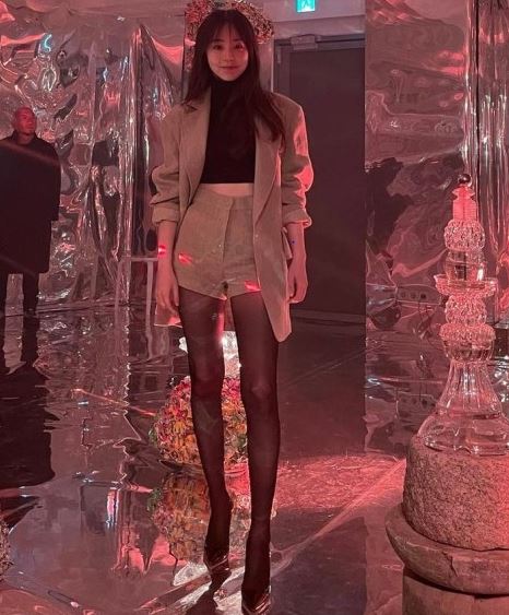 하이웨스트 숏팬츠와 오버핏 재킷을 맞춰 입고 이너로는 블랙 크롭티를 입어 톤앤무드를 맞췄다. 안소희 특유의 시크하면서도 사랑스러운 분위기 또한 돋보이는 착장이었다. 여기에 시스루 스타킹에 스틸레토 힐을 신어 섹시한 느낌까지 자아냈다.