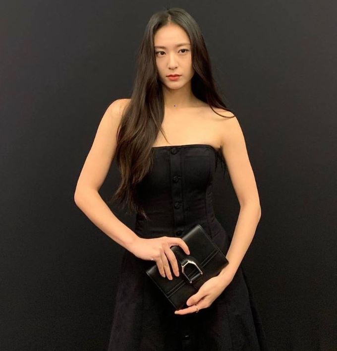 정수정은 최근 인스타그램에 여러 장의 사진을 게재했다. 정수정은 블랙 오프숄더 드레스 차림으로 고혹미를 뽐내고 있다. 특유의 시크한 분위기가 물씬 풍겼다.