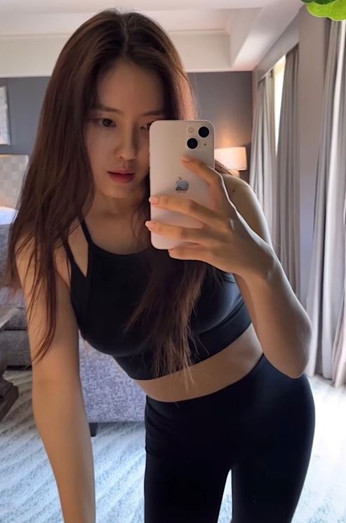 여기에는 검은색 브라톱에 레깅스를 착용한 효민이 거울 셀카를 찍고 있는 모습이 담겼다. 연신 몸매를 체크하는 듯 배를 만지며 자신의 몸을 바라보고 있어 눈길을 끌었다.