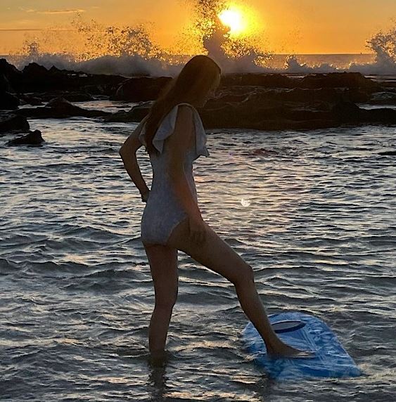 여기서 서효림은 휴양지에서 물놀이를 즐기고 있다. 화려한 프린팅의 수영복을 군살 하나 없이 완벽하게 소화해 눈길을 끌었다. 애 엄마라는 게 믿기지 않을 정도의 몸매다.