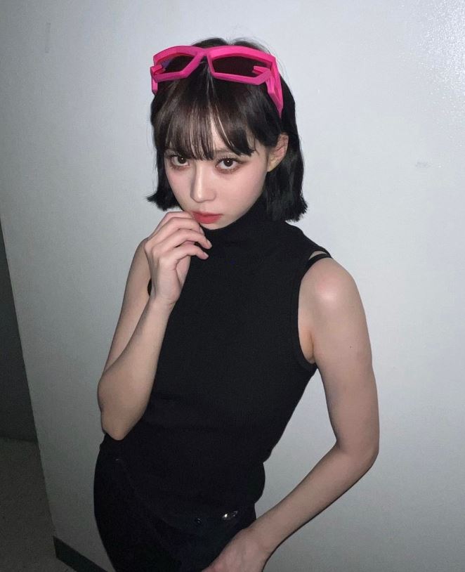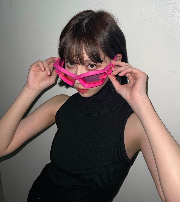 여기서 윈터는 올블랙 패션으로 무장한 채 시크미를 뽐내고 있다. 블랙 민소매 터틀넥에 블랙 진을 매치해 슬렌더 몸매도 한껏 과시했다. 여기에 핑크색 선글라스로 포인트를 줘 화려함 또한 빠뜨리지 않았다.
