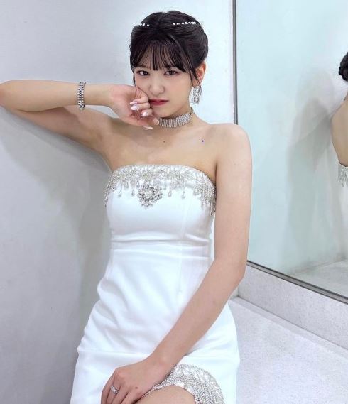 여기에는 새하얀 색의 오프숄더 미니 드레스를 입고 포즈를 취하고 있는 안유진의 모습이 담겨 있다. 가녀린 어깨라인과 쇄골을 모두 드러내고 있어 은근한 섹시미가 풍겼다.