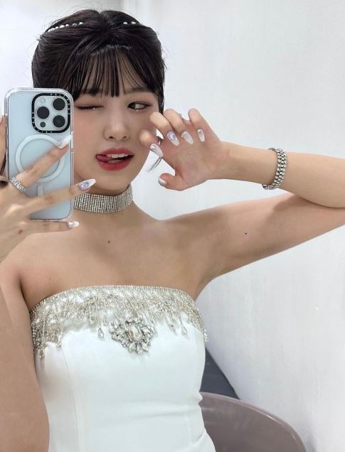다른 사진 속에서 안유진은 깨알 손톱을 자랑하며 거울 셀카를 찍고 있다. 윙크를 하고 있는 모습에서는 상큼 발랄한 매력이 돋보였다.