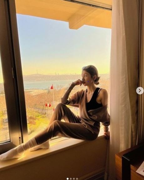 박지현은 최근 인스타그램에 "사진 놀이랑 노을"이라는 글과 여러 장의 사진을 게재했다.