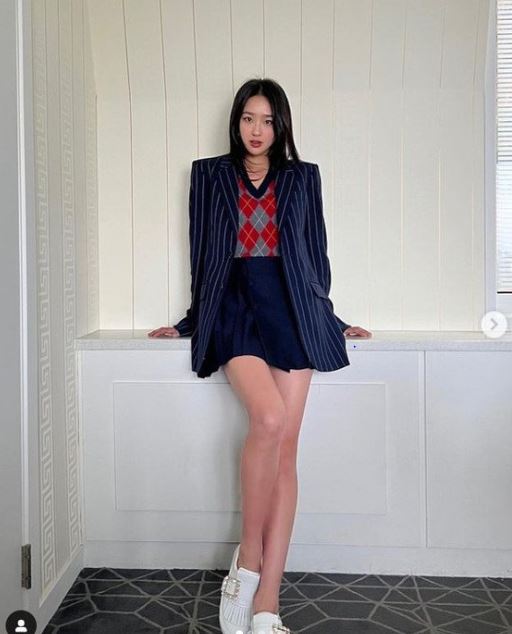 여기에는 손연재가 벽에 기대어 서서 포즈를 취하고 있는 모습이 담겼다. 이어진 사진 속 손연재는 다리를 꼬고 의자에 앉아 남다른 각선미를 드러내고 있다.