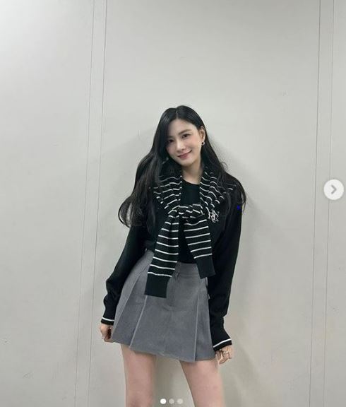 또 다른 사진 속에는 그녀의 전신샷이 포착됐다. 작은 얼굴과 길쭉한 다리 등으로 오하영은 우월한 비율과 함께 마네킹 같은 S라인 몸매를 뽐냈다. 뿐만 아니라 깜찍함 넘치는 포즈를 취한 그의 모습도 공개됐다.