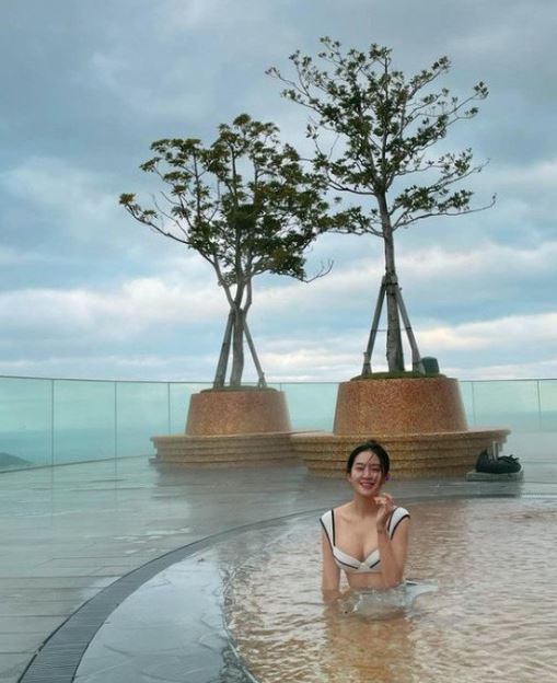 여기에는 박주현이 제주도의 5성급 호텔에서 휴가를 즐기는 모습이 담겼다. 그는 야외 수영장에서 원피스형 수영복과 비키니를 입고, 빼어난 미모는 물론 볼륨감 넘치는 몸매도 자연스럽게 뽐냈다.