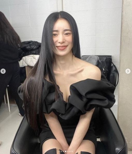여기서 미나는 민소매옷을 크롭톱처럼 만들어 뒤태를 자랑하고 있다. 꾸준한 운동으로 만들어진 탄탄함이 눈길을 끈다.