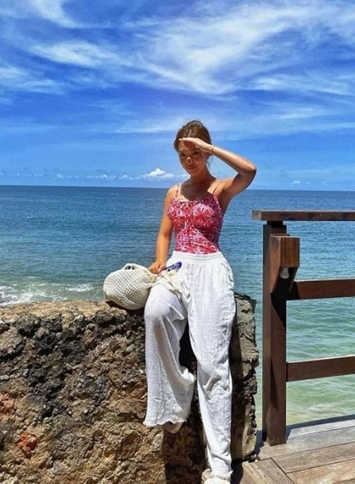 구릿빛 피부에 글래머러스한 몸매를 자랑한 그는 화보 같은 분위기를 연출했다.