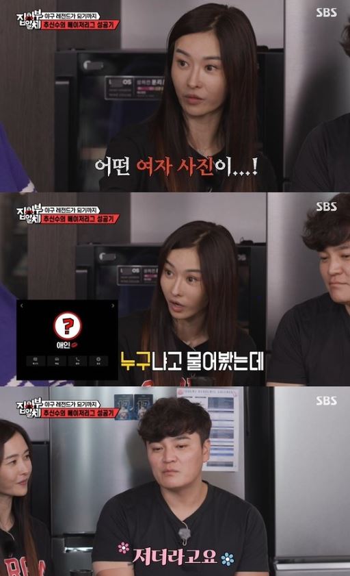 이어 이대호는 추신수에게 "그런데 제수씨를 왜 휴대전화 이름에 애인으로 왜 저장했나"라고 물었다. 하원미는 "처음엔 몰랐다"며 "휴대전화를 멀리서 봤는데 어떤 여자 사진이 있는 거다, 누구냐 하면서 물어보니까 저더라"라고 답했다. 그러자 추신수는 "'내 애인이야' 하고 전화 걸어보니까 아내한테 전화가 왔다"고 달달한 면모를 보여 원성을 또 자아냈다. 그러면서 추신수는 아내를 애인으로 저장한 이유에 대해 "와이프 마누라 여러가지 단어가 있지만 애인은 뭔가 새롭다"고 설명했고, 이대호는 "병원 안 갔으면 7명 낳았어"라고 말해 웃음을 더했다.