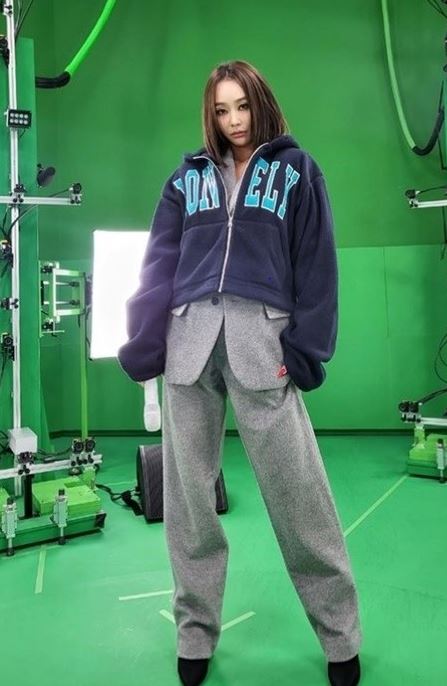 또 다른 사진에는 회색 슈트 셋업에 남색 후드집업을 매치해 입은 효린이 담겨 눈길을 끈다. 효린은 섹시하면서도 시크한 두 가지 매력을 뽐내 팬들의 시선을 강탈했다.