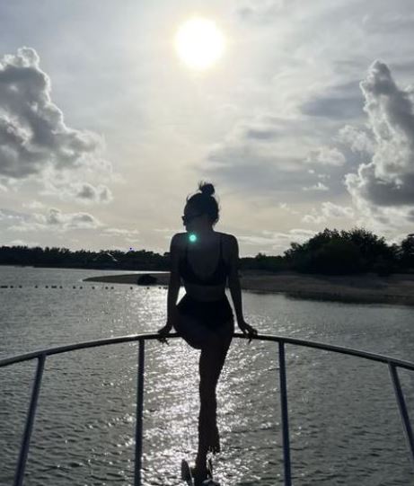 공개된 사진 속 화사는 검은색 비키니를 입은 채 보트 위에 앉아 여유를 즐기고 있다. 역광에 비친 그의 실루엣과 군살 없는 몸매가 보는 이들의 시선을 사로잡는다.