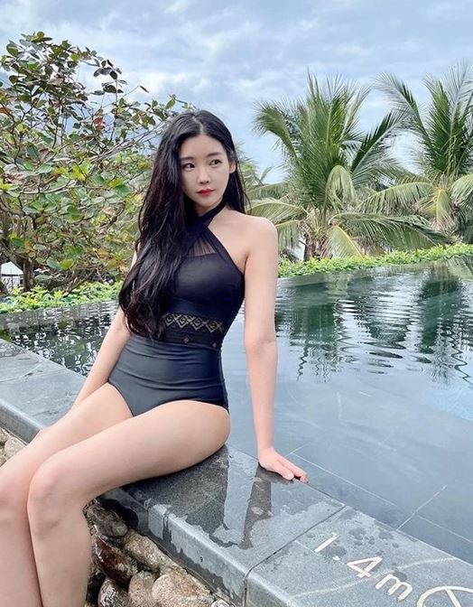 레이나는 최근 인스타그램에 "아추아추"라는 글과 함께 사진 2장을 올렸다. 여기에는 베트남 여행 중 수영장에서 다양한 포즈를 취하고 있는 레이나가 담겼다.