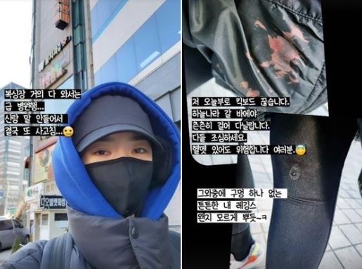 그러면서 "저 오늘부로 킥보드 끊습니다. 하늘나라 갈 바에야 천천히 걸어 다니렵니다. 다들 조심하세요. 헬멧 있어도 위험합니다 여러분"이라고 주의를 당부하면서도 "그 와중에 구멍 하나 없는 튼튼한 내 레깅스 왠지 모르게 뿌듯했다"라고 사고 당시 입고 있던 레깅스를 공개해 웃음을 주기도 했다.