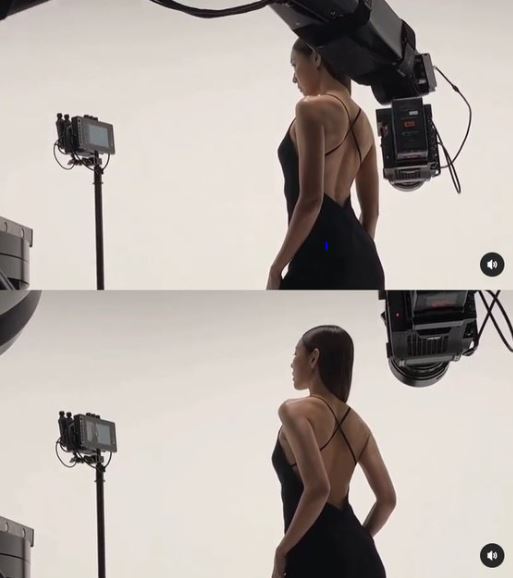 여기에는 카메라를 바라본 채 포즈를 취하는 한혜진의 뒷모습이 담겼다. 등이 노출된 검은 드레스를 입은 한혜진은 감독의 지시대로 포즈를 연출하고 있다. 잔근육이 가득한 관리가 잘 된 뒤태와 프로 모델 다운 당당하고 자신만만한 모습이 눈길을 끈다.