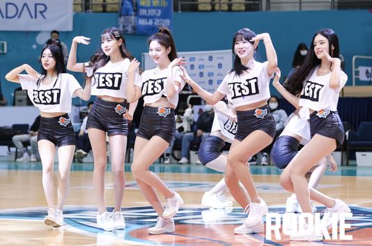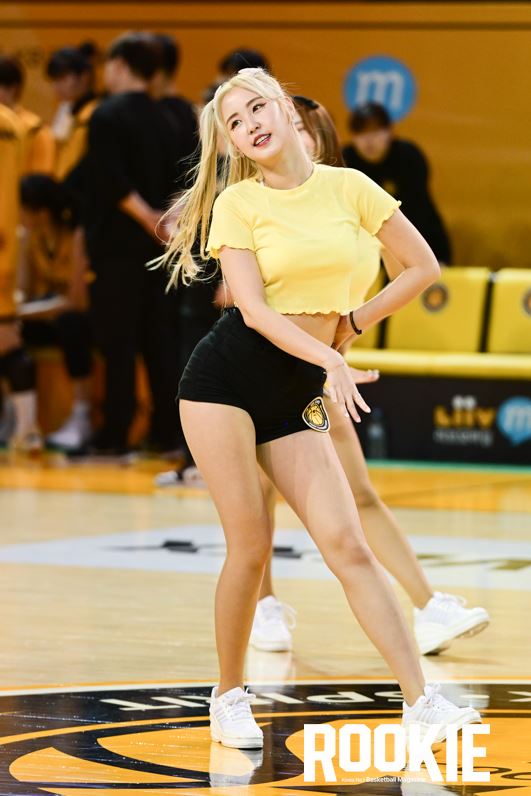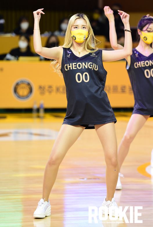청주실내체육관에서 ‘신한은행 SOL 2022~2023 여자프로농구’ 청주 KB스타즈와 부산 BNK썸의 경기가 열렸다. 김한슬 치어리더가 KB스타즈를 응원하고 있다.
