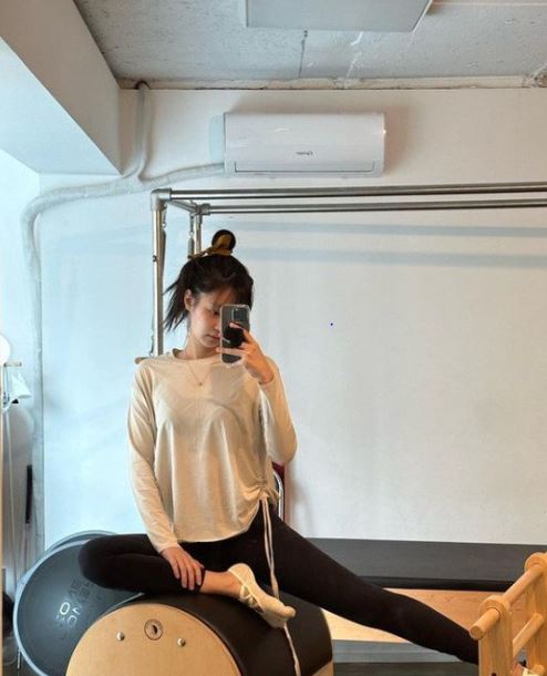 제니는 최근 인스타그램에 필라테스 중인 사진 여러장을 공유했다.