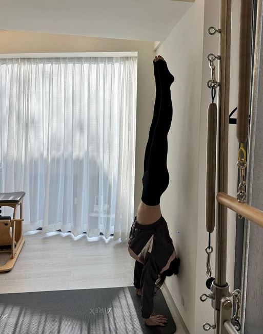 태연의 잘록한 허리와 딱 떨어지는 골반라인의 콜라병 몸매가 돋보인다. 또 태연은 물구나무 자세를 완벽하게 선보이며 남다른 운동 신경을 뽐냈다.