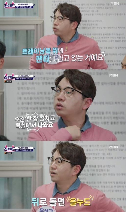 이날 20년 차 택배기사 윤성구씨는 눈앞에서 배송된 속옷을 입은 손님 때문에 당황했던 일화를 전했다.