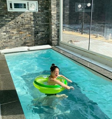 고은아는 최근 인스타그램에 수영장에서 수영을 즐기고 있는 모습을 담은 사진을 게시했다.