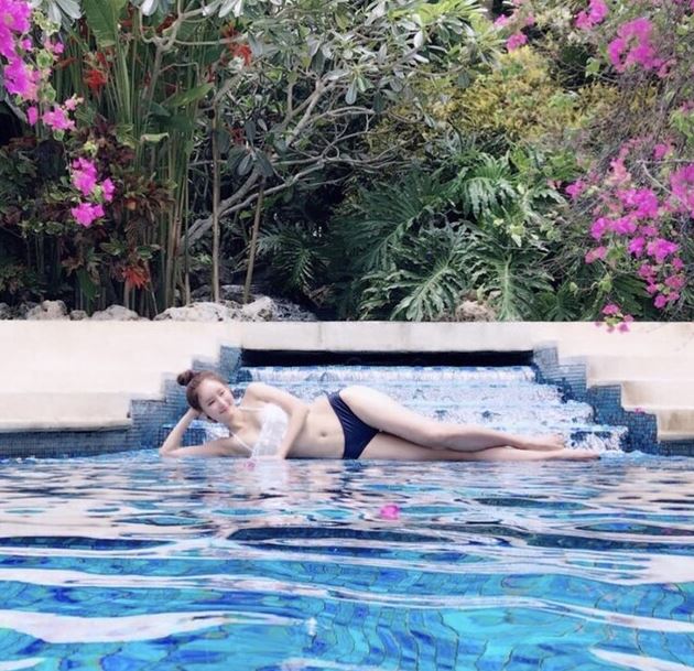 박지영은 최근 SNS를 통해 휴가 당시 촬영한 사진 여러 장을 게재했다. 여기에는 고급스러운 야외 수영장 계단에 누워 맑은 미소로 카메라를 응시하고 있는 박지영의 모습이 눈길을 끌었다.