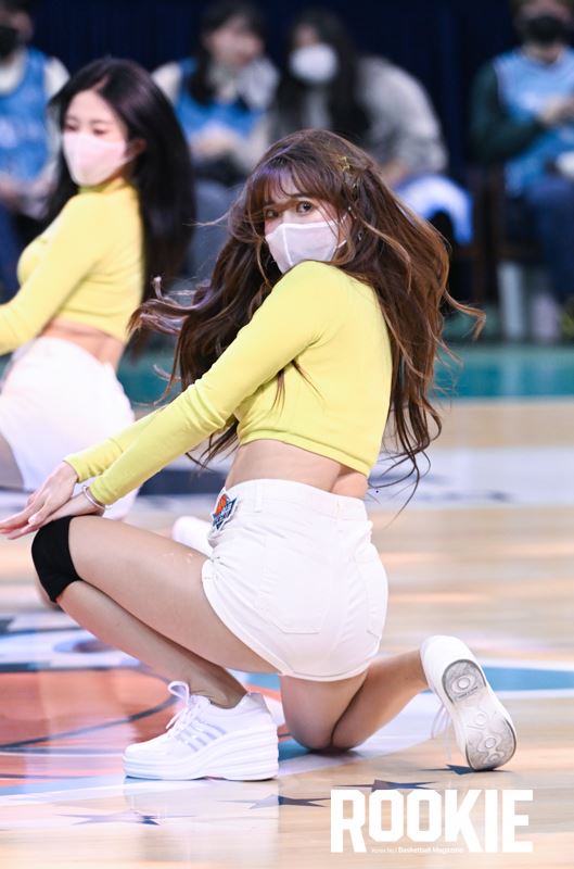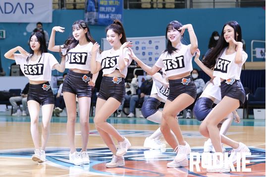 부천실내체육관에서 ‘신한은행 SOL 2022~2023 여자프로농구’ 부천 하나원큐와 인천 신한은행의 경기가 열렸다. 김한나를 비롯한 하나원큐 치어리더가 응원하고 있다.