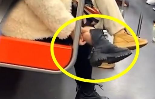 해당 여성은 최근 중국 항저우 지하철 1호선 객실에서 제일 끝 쪽 좌석에 앉아 이 같은 행동을 했다. 흰색 재킷에 검은색 바지를 입은 이 여성은 가죽워커를 신은 한쪽 발을 반대쪽 다리 위에 올렸다.