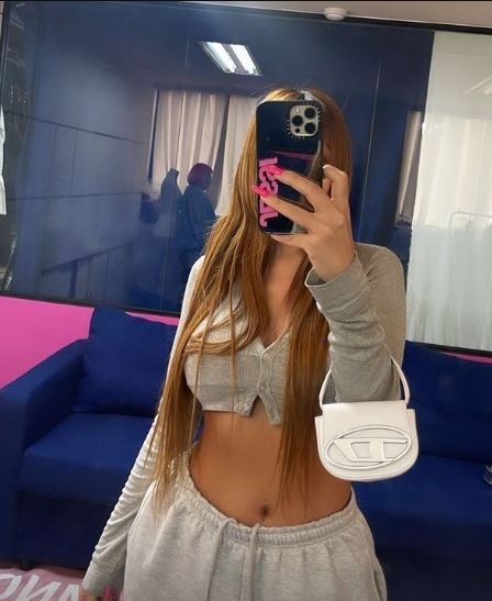 제시는 인스타그램 스토리에 명품 가방 브랜드를 태그하며 해당 브랜드의 화이트 미니백을 들고 찍은 거울 셀카와 동영상을 공개했다.