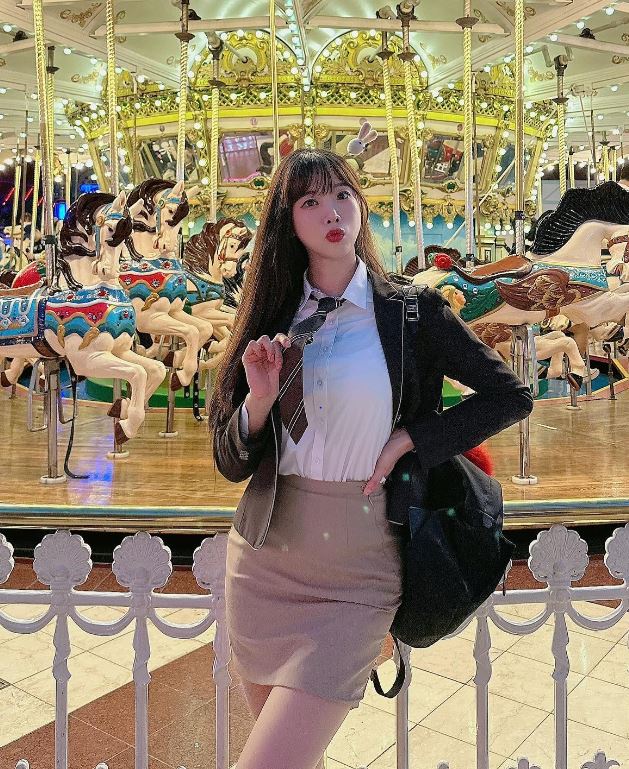 공개된 사진에서 김한나 치어리더는 스쿨룩 차림으로 놀이기구 앞에서 포즈를 취하고 있다. 김한나 치어리더 특유의 맑은 미소와 살짝 드러난 몸매가 남성 팬들의 눈길을 끌었다.