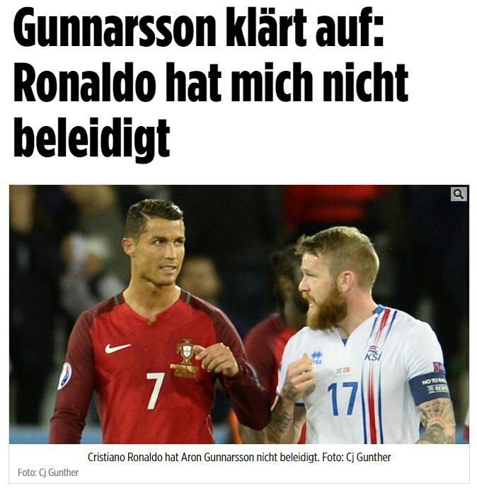 군나르손도 인터뷰로 당시 상황을 밝혔는데요. 그는 "호날두는 '너 누구니'라는 말을 하지 않았다. 그는 내게 라커룸에서 바꾸자고 했다"고 밝혔습니다. 그나 저나 어쩌요. 호날두는 오늘 새벽 열린 오스트리아전에서 PK를 실축했고 포르투갈은 또 0-0으로 비겼네요.