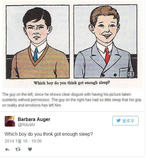 두 소년의 그림을 보여주며 둘 중 누가 밤을 샜는지 묻는 퀴즈가 누리꾼들 사이에서 화제다.