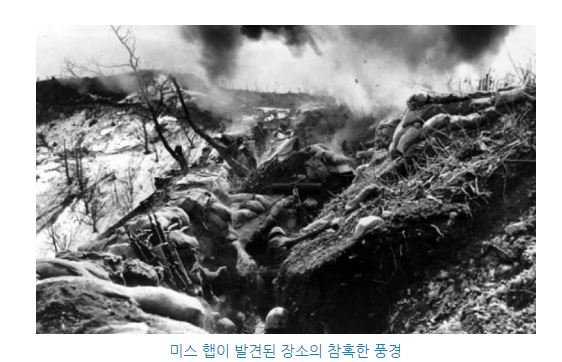 해당 사진은 '한국전쟁' 당시 '한국'에서 촬영된 것으로 우유를 받아 먹고 있는 새끼 고양이는 '한국'의 고양이이다. 미군 병사는 고양이에게 '미스 햅(Miss Hap)'이라는 이름을 지어주었는데 그 뜻은 '나쁜 때에 나쁜 장소에서 태어났다'이다.