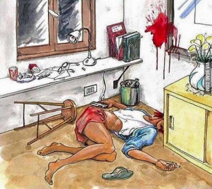 다음의 그림을 보고 자살인지 타살인지 생각해보자