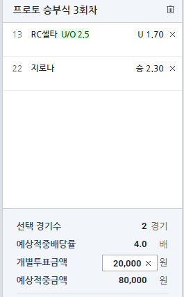 AT마드리드는 직전 세비야와 홈경기서 1-0으로 승리했다. 최근 리그 6경기서 3승 1무 2패의 흐름. 성적이 입증하듯 최근 리스크가 없지 않다. 무엇보다 홈 연승 행진이 무너진데다 원정에선 중위권 팀에게도 고전하는 빈도가 늘었다. 직전 세비야전은 선발 파이브백 가운데 4명이 옐로카드를 받았고 DF 소이운쿠는 퇴장까지 당했다. 이번 지로나 원정서도 비슷한 일이 벌어질 수 있겠단 생각이며 이런 경우 PK에 의해 승부가 갈릴 가능성도 배제할 수 없다.