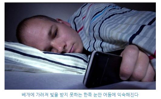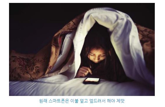 밤에 침대에서 스마트폰을 볼 때 반드시 엎드린 자세로 봐야한다.