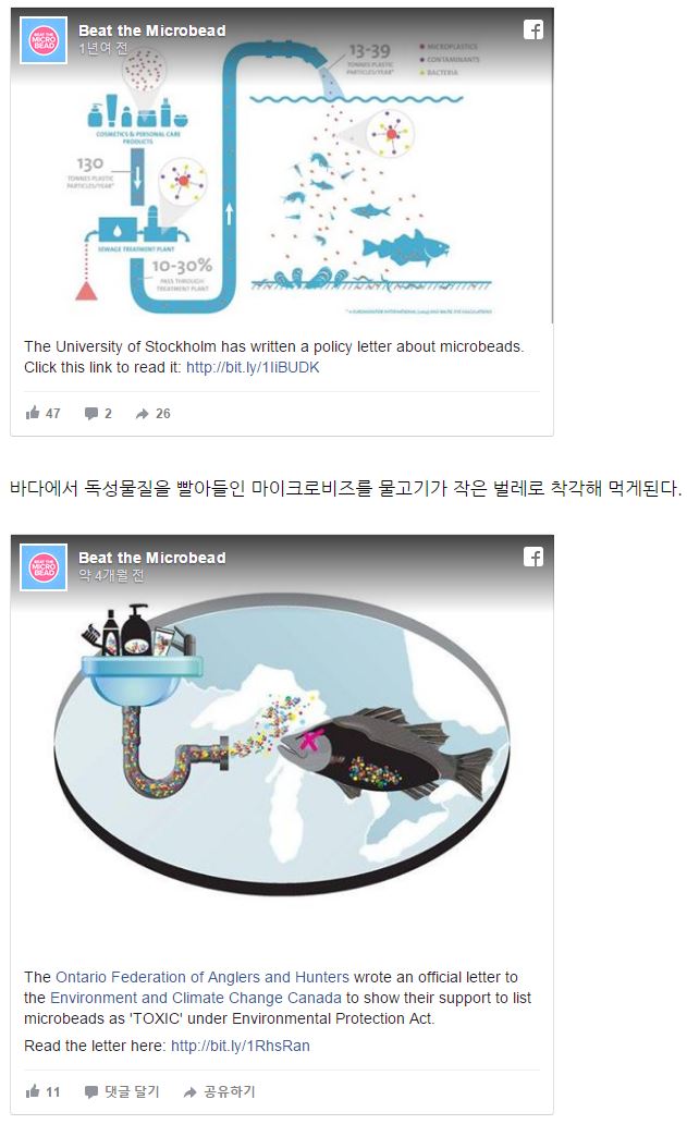 이 내용을 접한 누리꾼들은 "앞으로 마이크로비즈 알갱이가 있는 치약이나 스크럽제품 사용을 자제해야겠다", "바닷물에 휩쓸려 간 쓰레기 먹은 거북이나 바다새가 처참하게 죽은 것 본지 얼마 안됐는데 참 슬프다" 등의 반응을 보였다.