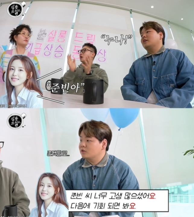 곽튜브는 "비하인드를 이야기하자면 촬영하면서 말을 놓기로 했다. 촬영 끝나고 전효성 씨한테 문자가 왔는데 '준빈 씨 너무 고생 많으셨어요. 다음에 기회 되면 봐요'라고 하더라. 존댓말로"라고 말했다.