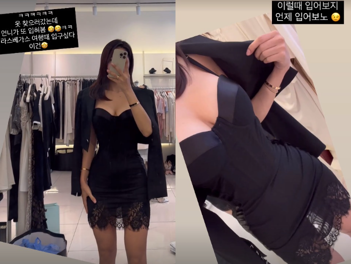 오또맘은 최근 자신의 SNS에 "옷 찾으러 갔는데 언니가 또 입혀봄! 라스베가스 여행 때 입고 싶다 이건"이라는 글과 함께 영상을 게시했다.