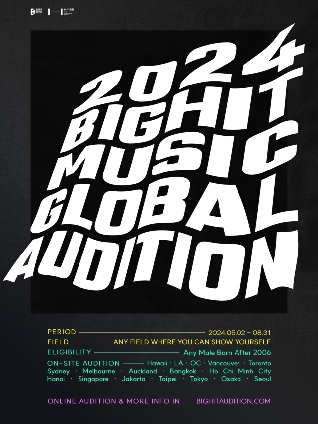 빅히트 뮤직이 글로벌 오디션을 개최한다는 소식이 전해졌다. 이번 오디션은 온라인과 오프라인에서 진행되며, 2006년 이후 출생한 모든 남성들이 참여할 수 있다. 특정 분야에 제한 없이 자신의 매력과 끼를 발휘할 수 있는 모든 형태로 참가할 수 있다.
